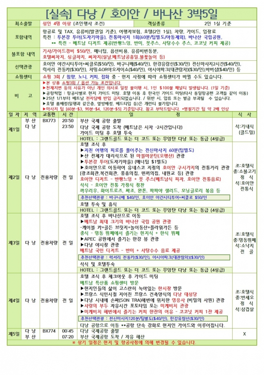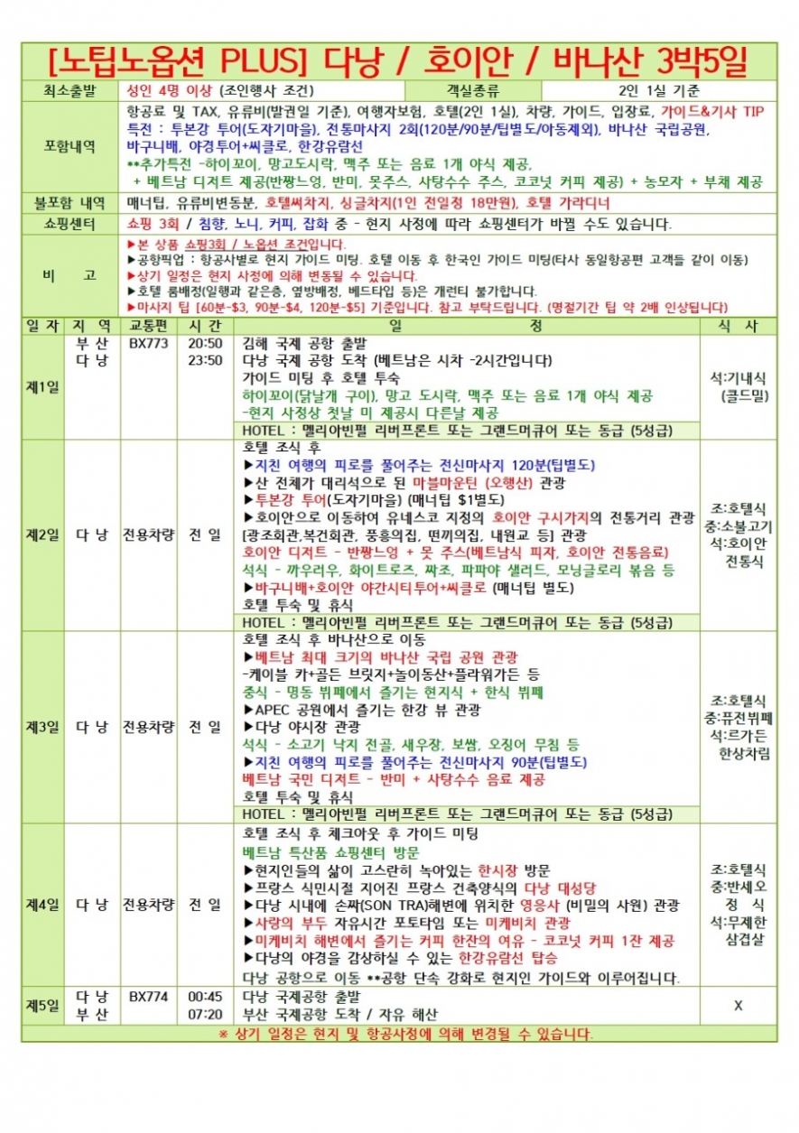 2026년 구정연휴 베트남 다낭/호이안 노팁 노옵션 패키지 3박5일