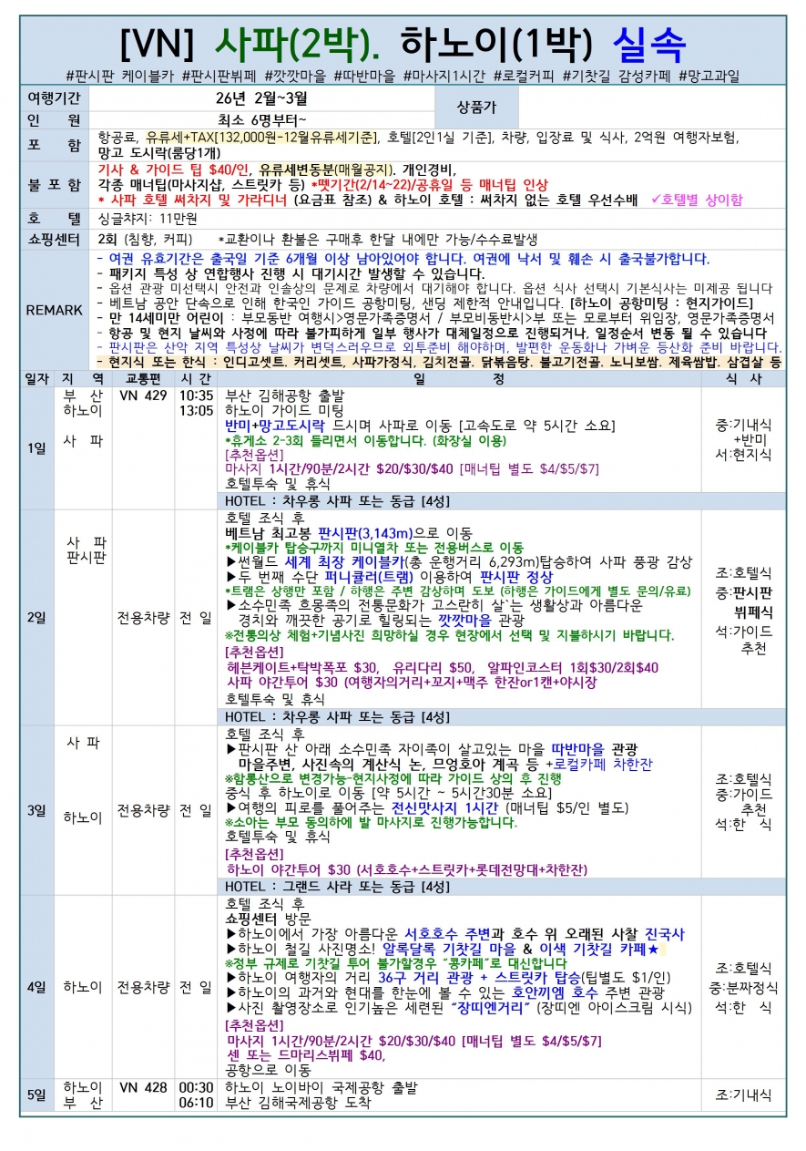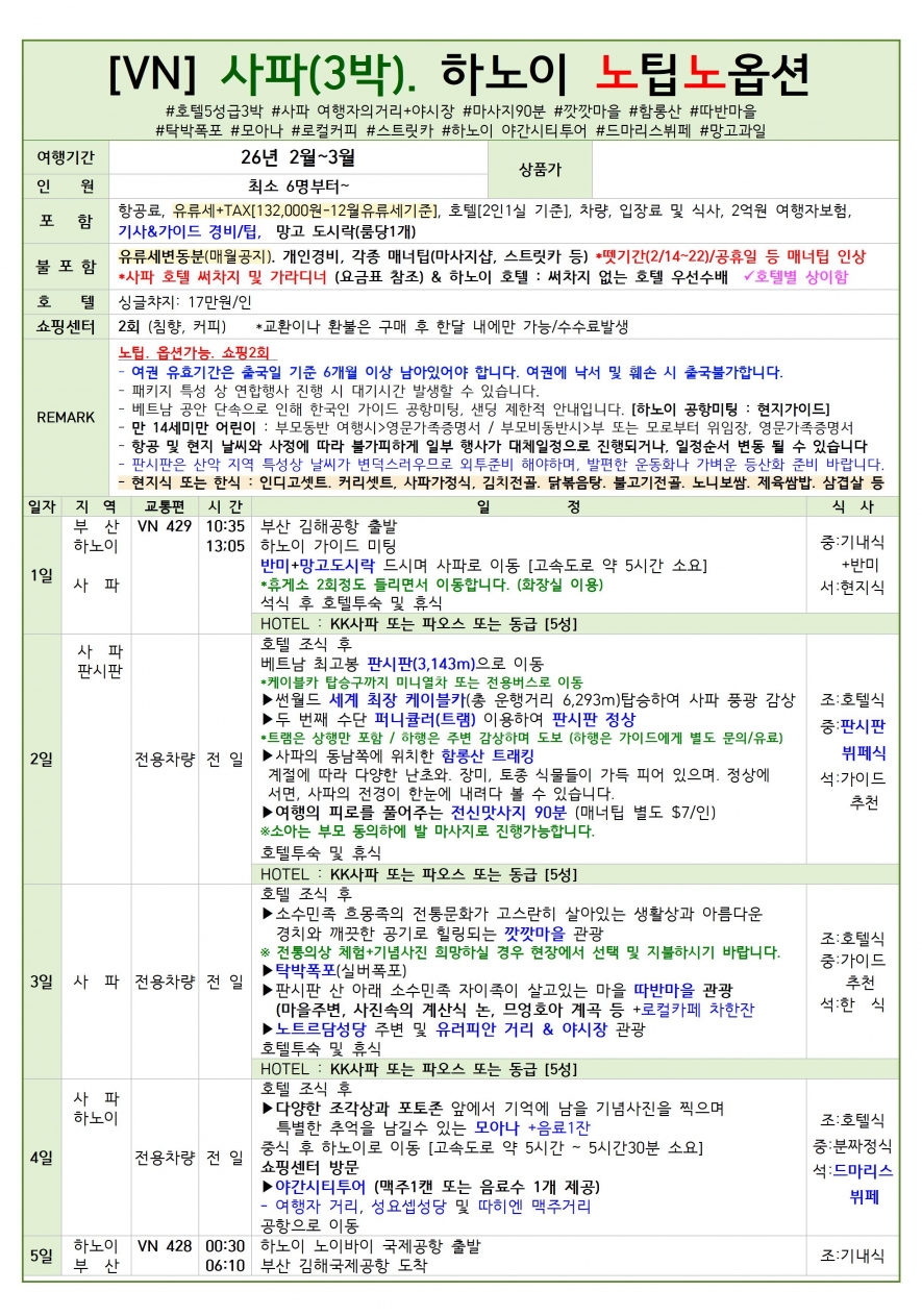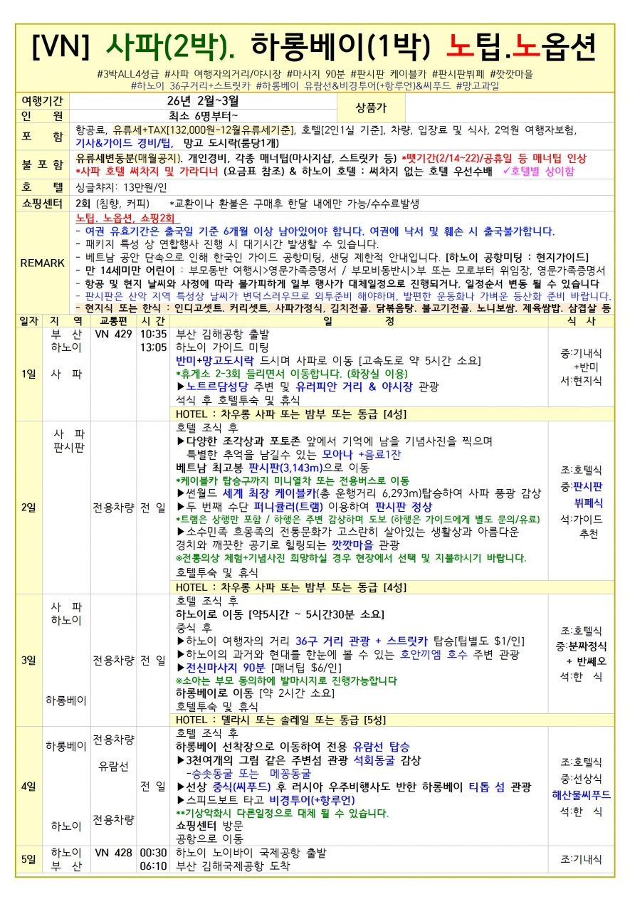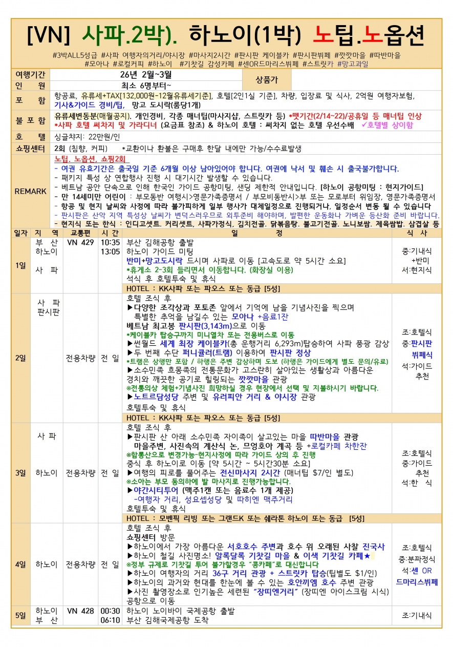 * 항공 스케줄로 일정이 변경 될 수 있으며, 호텔 상황에 따라 변경 될 수 있습니다.