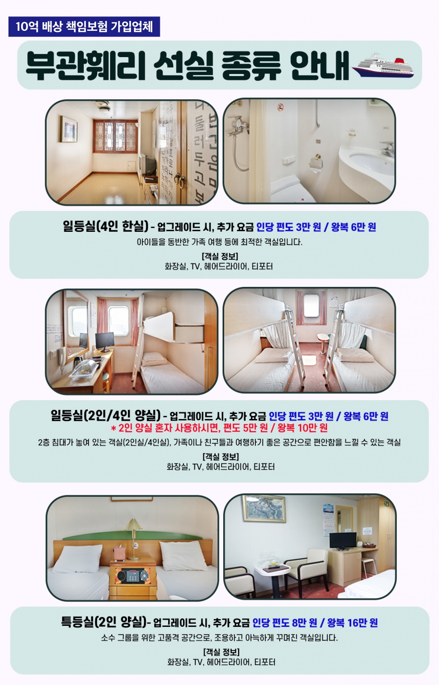 ★중요: 선실업그레드는 출발 1~2일전 확인할 수 있으므로 대기조건입니다.