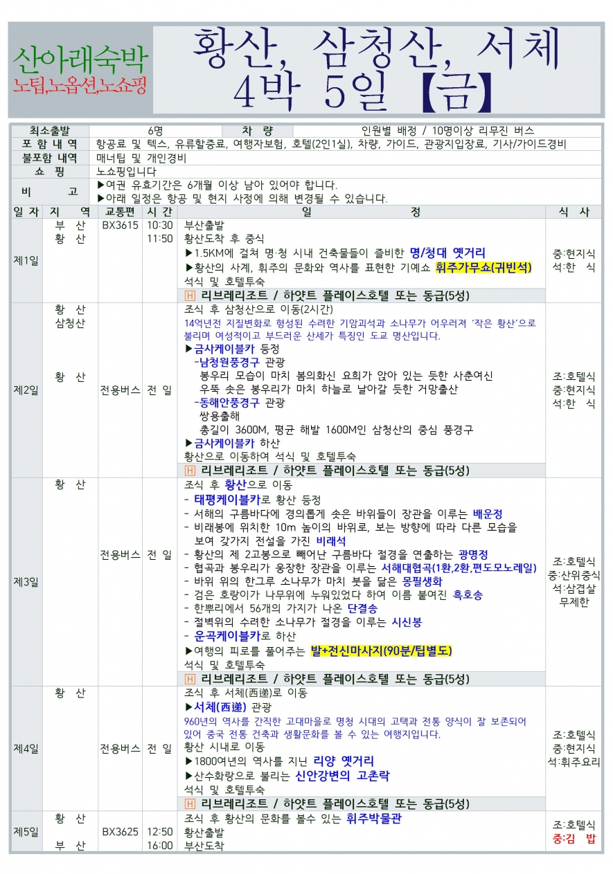4/21 산위숙박 노노 979,000원/인, 특가 399,000원/인 출발확정