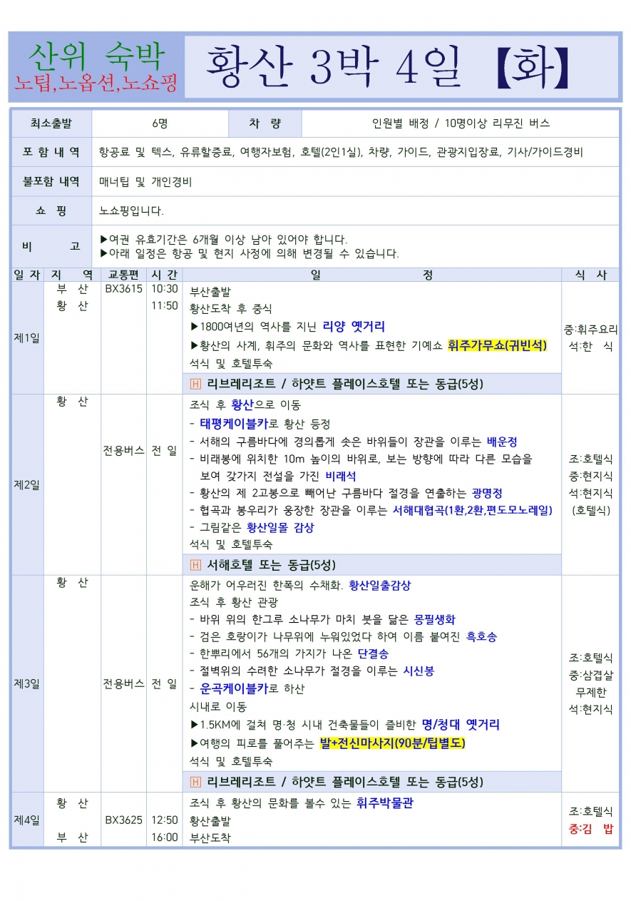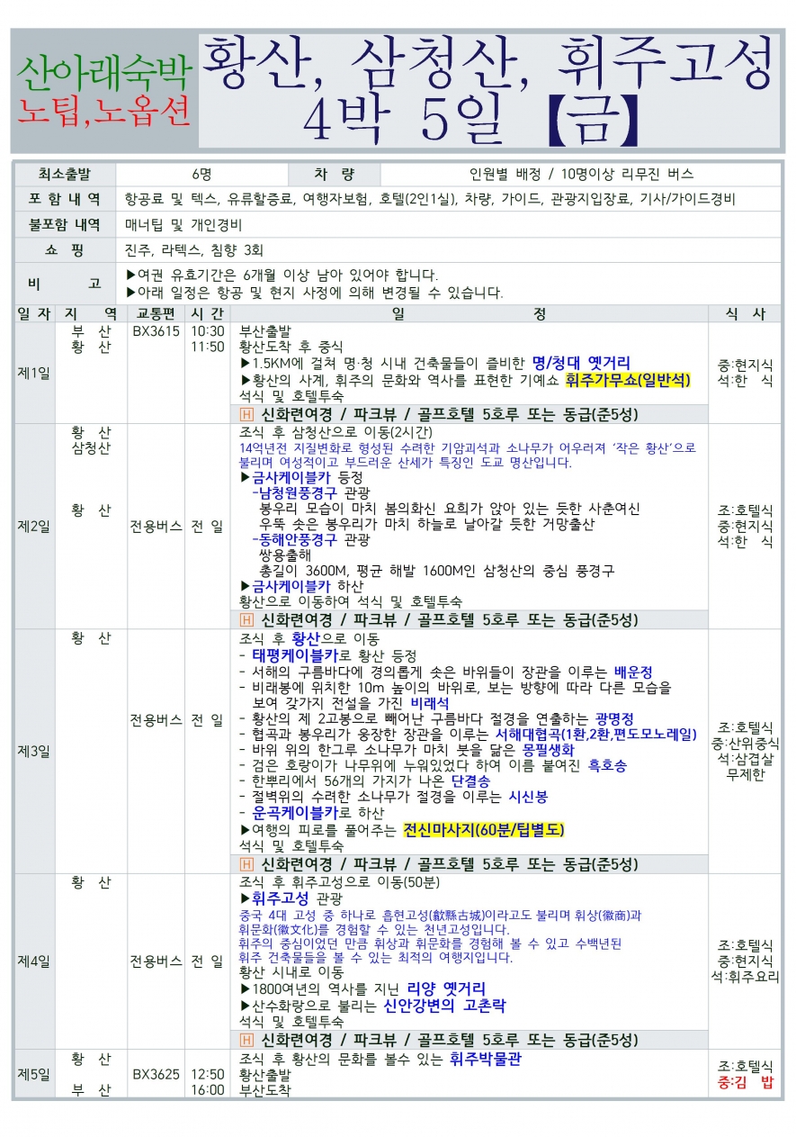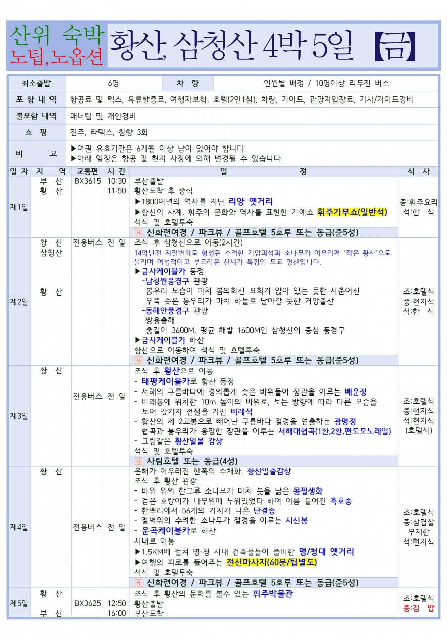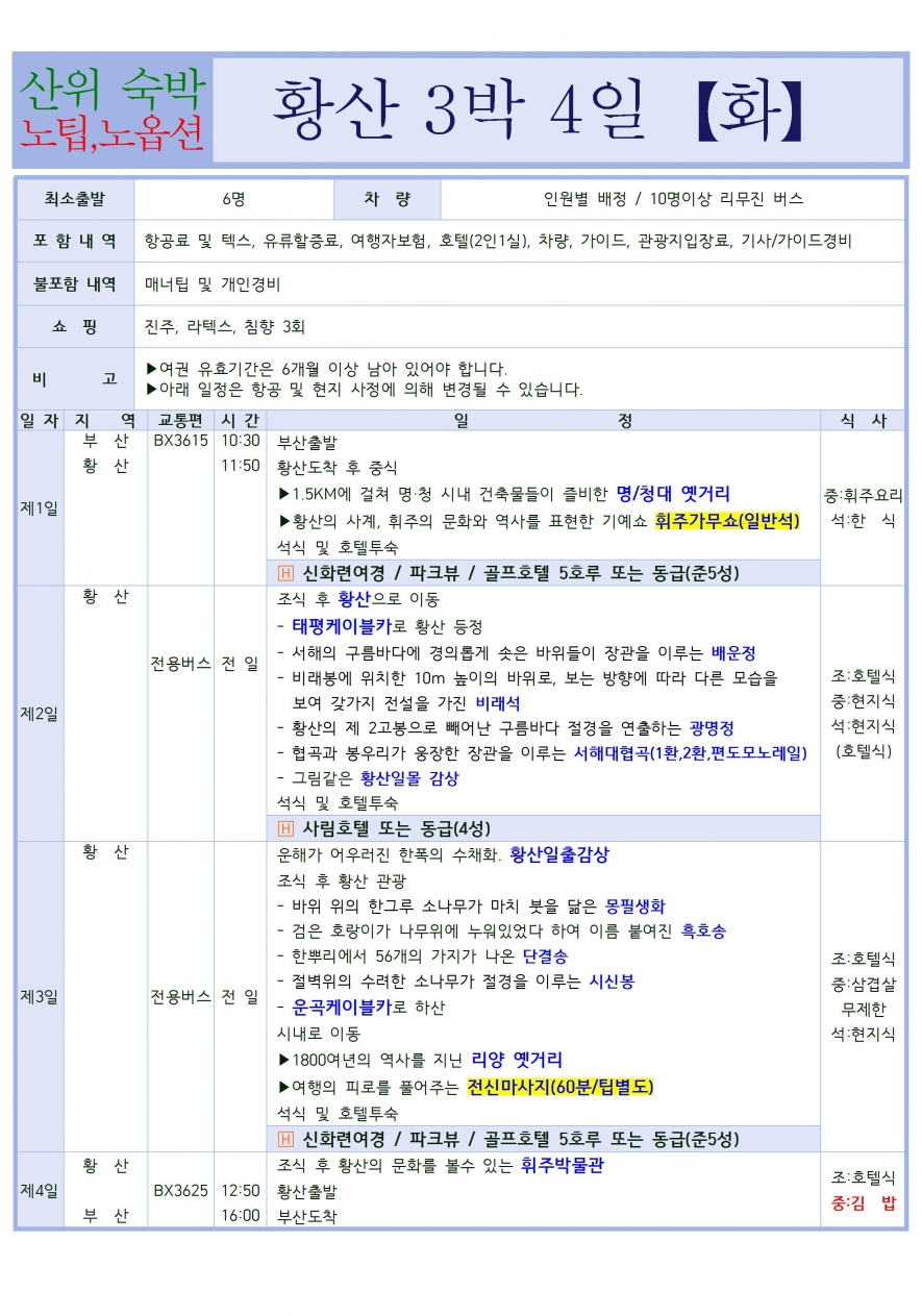 화, 금 운항(화 3박 4일/ 금 4박 5일)