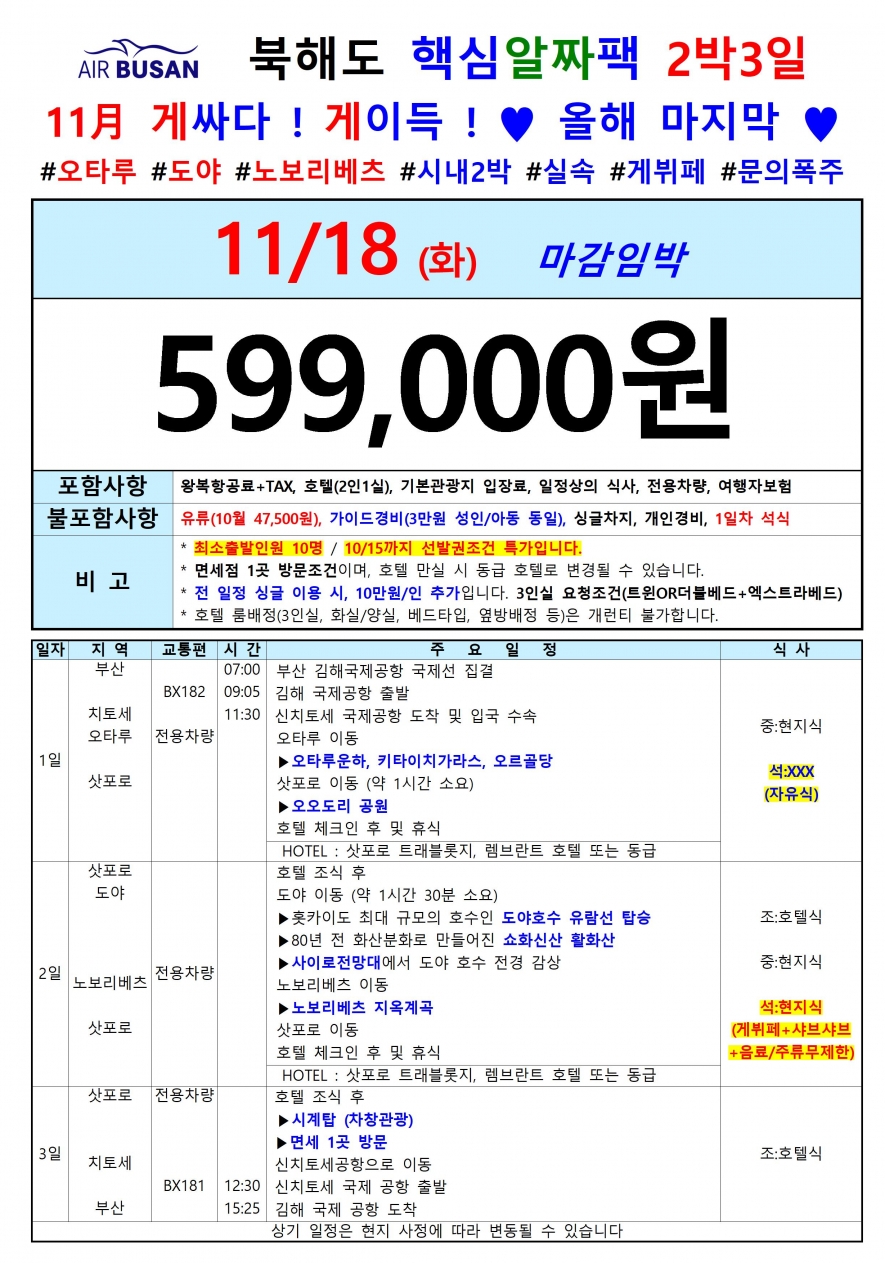 * 항공 스케줄로 일정이 변경 될 수 있으며, 호텔 상황에 따라 변경 될 수 있습니다.