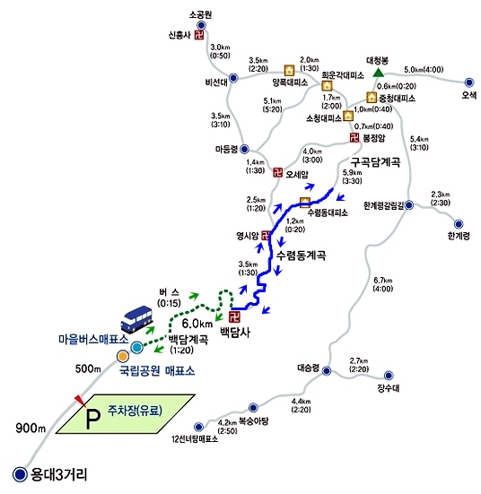 설악산 수렴동계곡 & 백담계곡 단풍트레킹 1코스 용대리~셔틀버스~백담사~영시암~수렴동계곡~백담사~셔틀버스~용대리15km 2코스 용대리~백담계곡~백담사~백담계곡~용대리13km 3코스 자유트레킹 [총부여시간 6시간30분] 중식 - 개별준비 하산후 인근 식당가 많이 있습니다. |