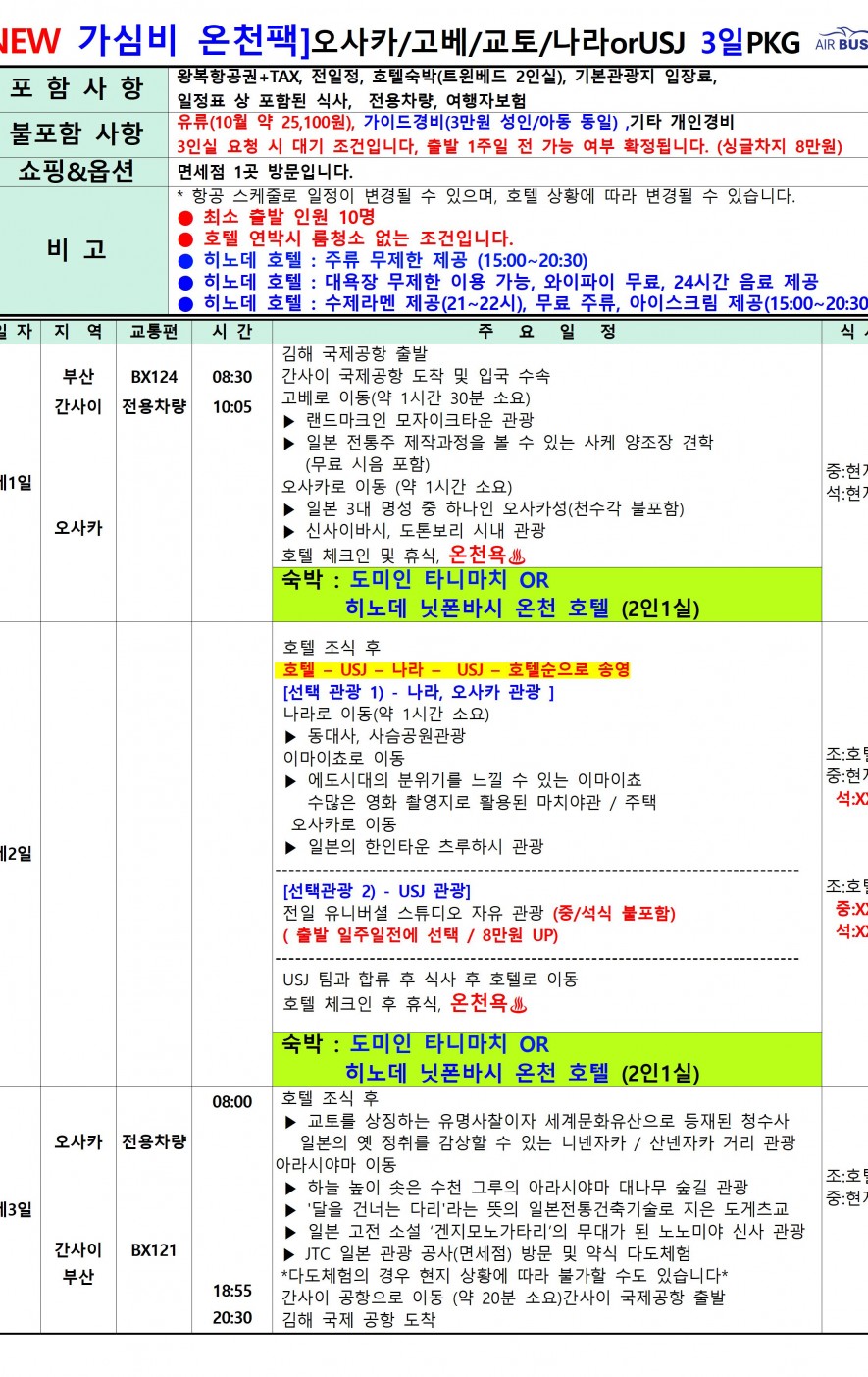 김해공항 개별이동상품 - 매일출발!! 매일 10명이상 일정진행됩니다!!