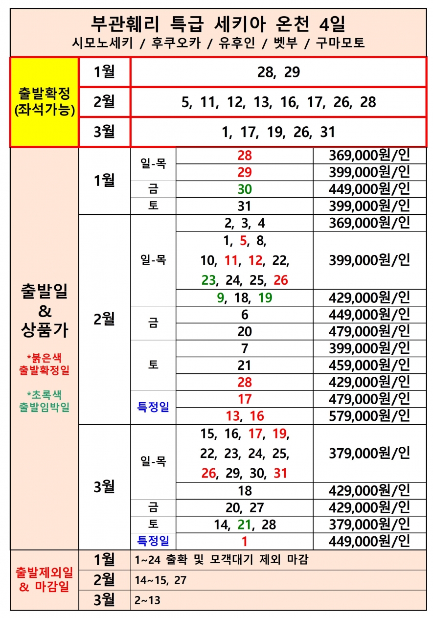 예약시점 좌석 체크후 안내가능합니다. 상품등록일 기준 좌석입니다. 1/5기준