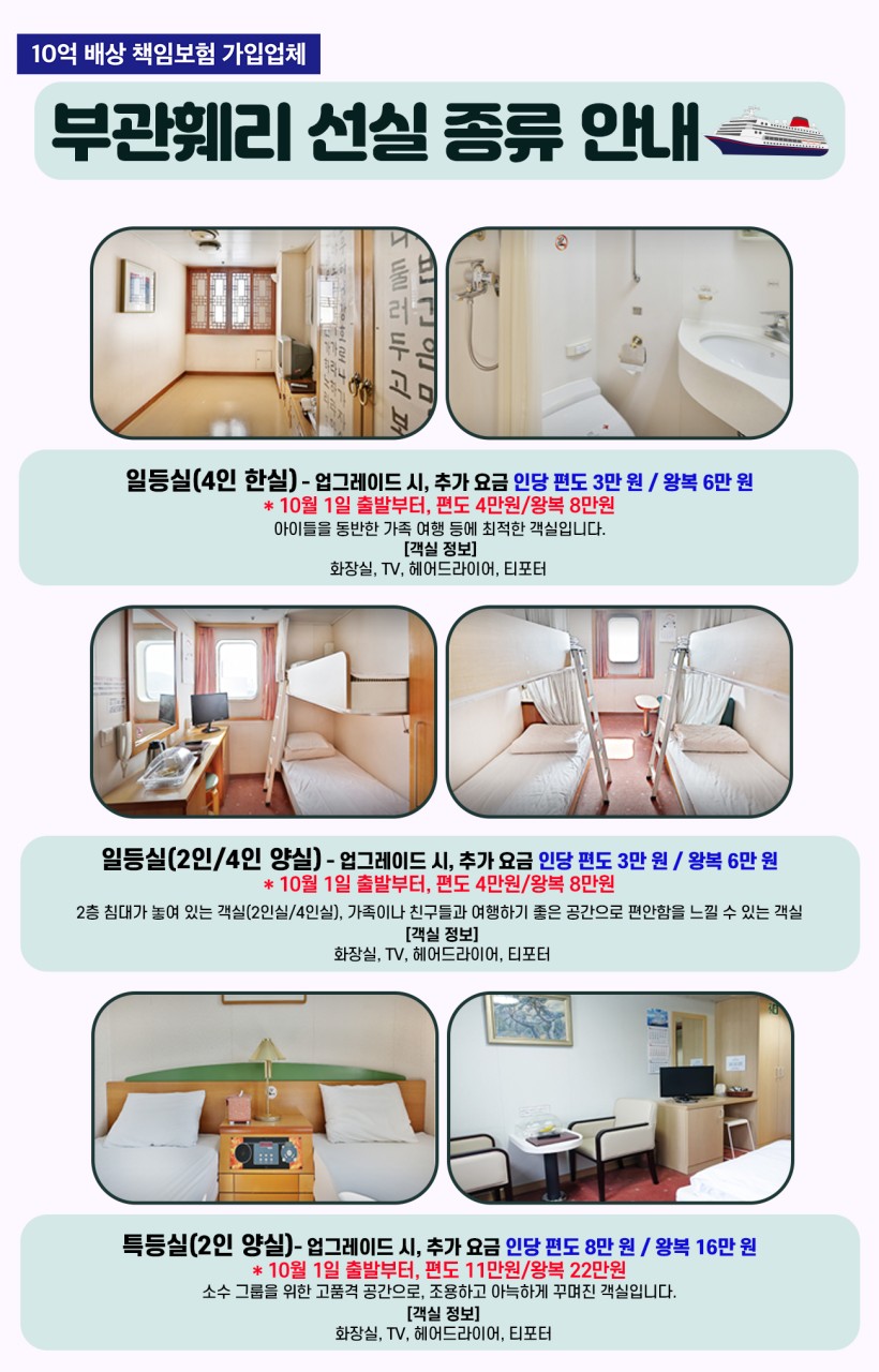 ★1등실 (화장실 X, 세면대만 O)* -편도3만/왕복6만