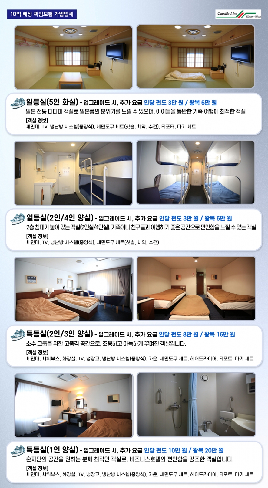 카멜리아 선실 업그레이드 안내