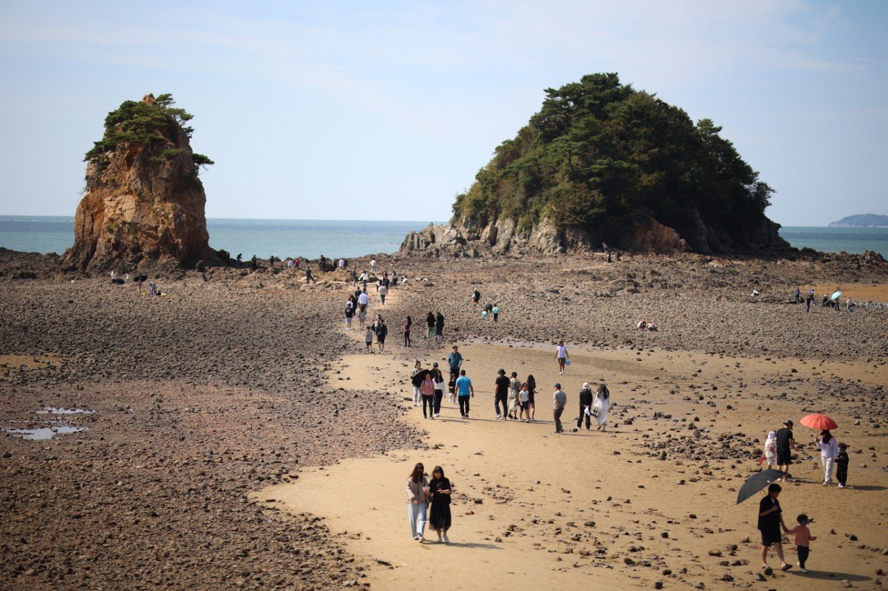 오른쪽으로 서해를 바라보며 안면송이 가득한 해변 길을 걷게 된다. 백사장항을 출발하여 걷다 보면 세 개의 봉우리가 인상적인 삼봉해변과 울창한 곰솔 숲을 지나고 기지포해수욕장이 나온다. 노을길 중 가장 다양한 탐방로가 있는 기지포에는 해안사구와 탐방지원센터가 있다. 휠체어나 유모차도 쉽게 다닐 수 있도록 나무 데크도 설치되어 있어 천사 길이라고도 불린다. 창정교를 지나 올라가면 두여전망대가 나타나는데 이곳은 노을길 가운데서도 가장 좋은 전망을 감상할 수 있는 포인트. 독특한 습곡이 내려다보이며 먼바다의 탁 트인 조망이 가슴을 후련하게 한다. 방포항 근처에는 천연기념물 모감주나무 군락이 있고 방포 전망대가 있어 여기서 꽃지해변이 보인다. 노을길 마지막 코스인 꽃지해수욕장은 서해안 일몰이 아름답기로 유명하다. ⓒ한국관광공사