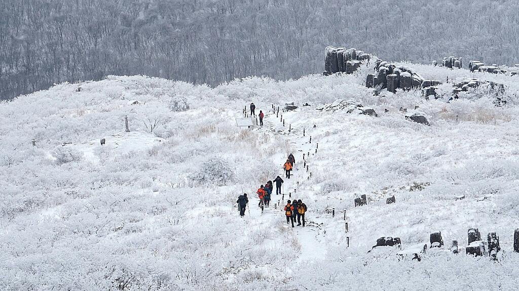광주 무등산 눈꽃산행 1코스 : 원효사지구 주차장 ~ 꼬막재 ~ 규봉암 ~ 장부재 ~ 입석대 ~ 서석대 ~ 인왕봉 ~ 원효사지구 주차장 13km 2코스 : 원효사지구 주차장 ~ 서석대 ~ 인왕봉 ~ 서석대 ~ 원효사지구 주차장 8km 중식-개별준비 무등산