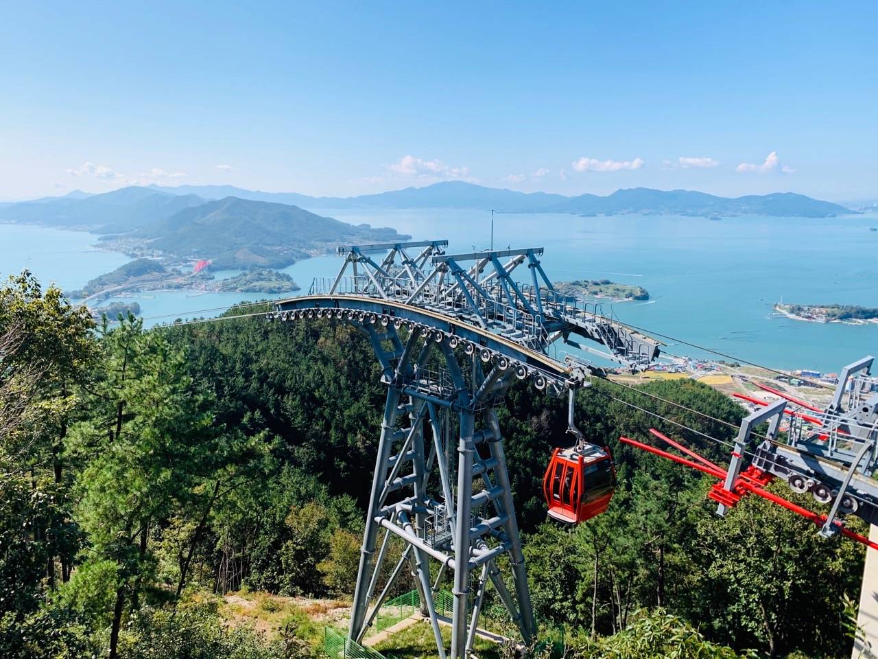 산-바다-섬을 잇는 국내 최초의 케이블카! 아찔한 높이에서 내려다보는 푸른 남해와 에메랄드빛 실안 낙조의 황홀한 경관은, 마치 바다 위를 날아오르는 듯한 특별한 감동과 짜릿함을 선사합니다. 아라연수원-초양역-각산역'**을 잇는 국내 최장 구간(2.43km)으로, 각산역 전망대에서 찍는 사진이 가장 아름답습니다.