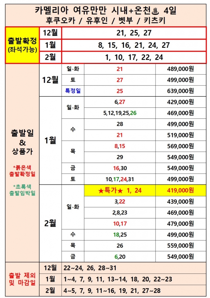 ▶포함사항:왕복훼리비, 부두세&유류세(한국/일본), 관광세, 호텔비, 버스비, 입장료, 쓰루가이드, 여행자 보험