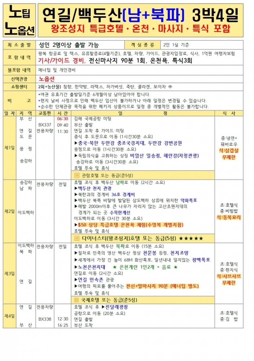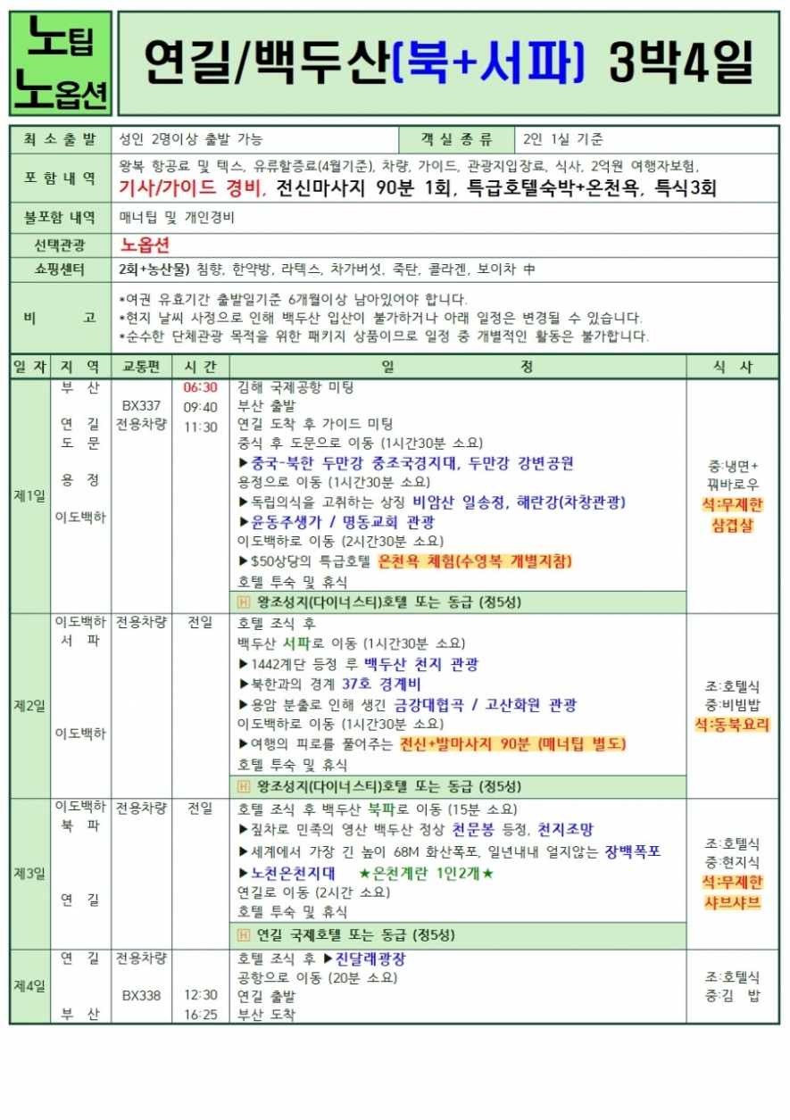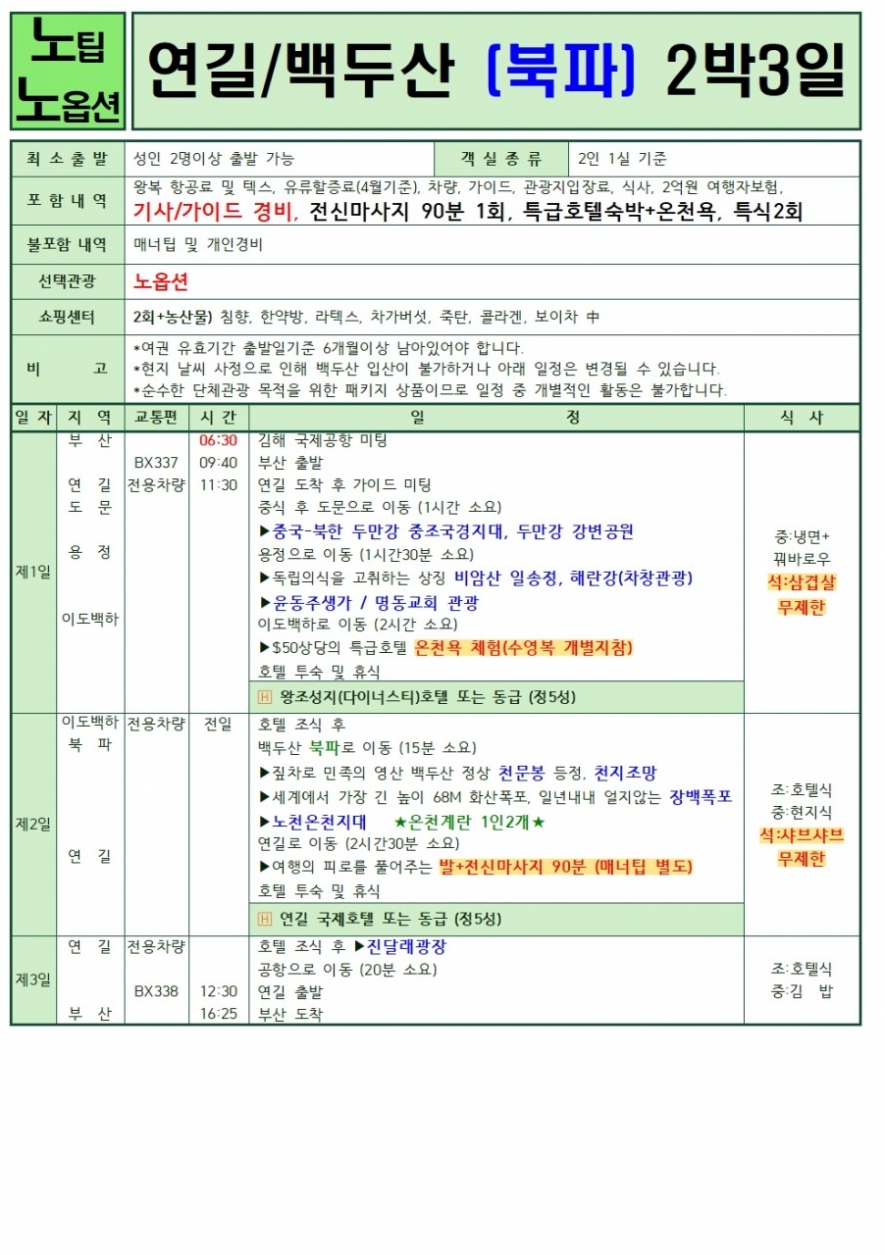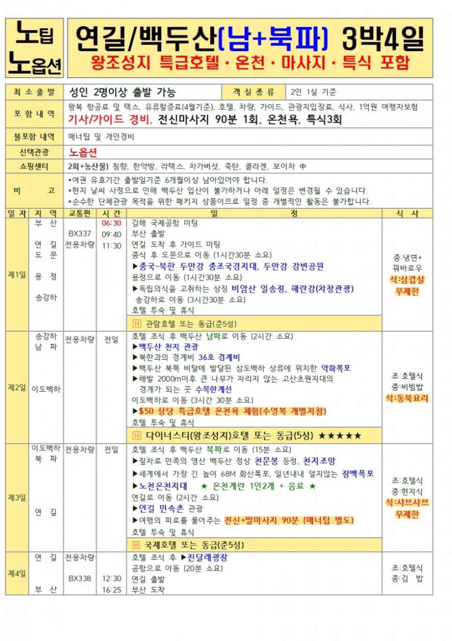 노팁,노옵션 (2박3일(북파), 3박4일(서파&북파)), 남파&북파 2박 3일