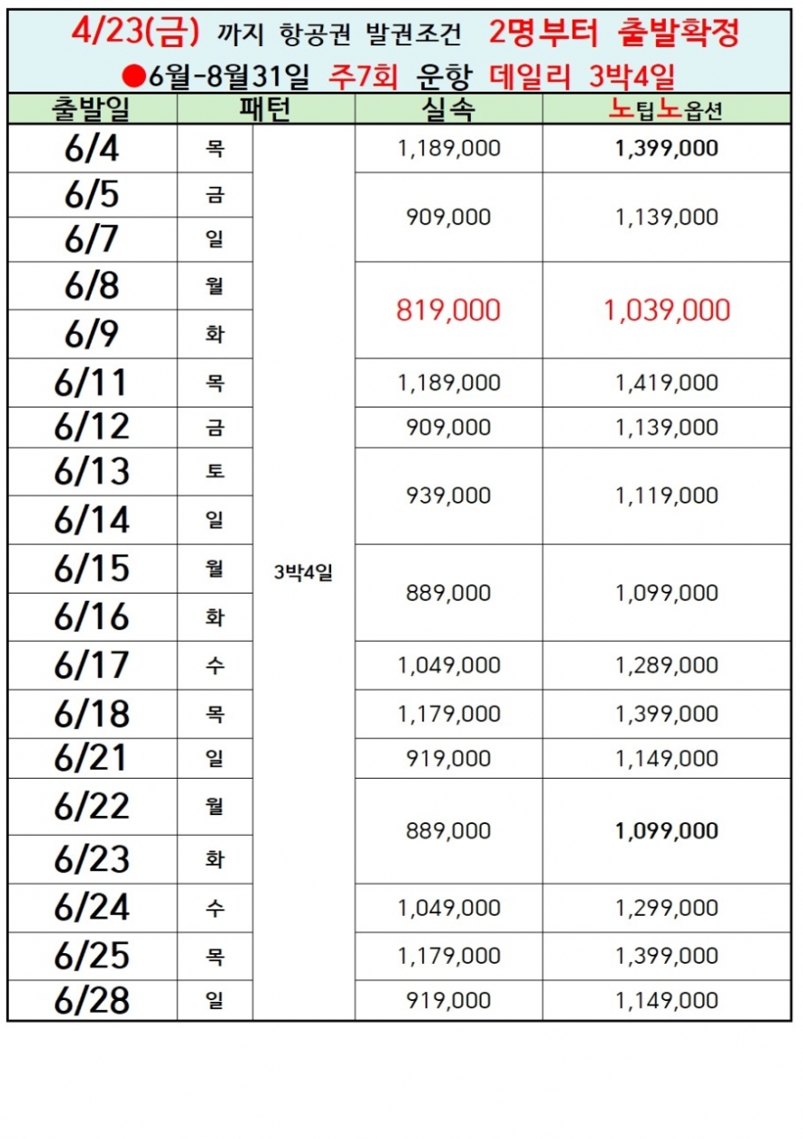 ★특가는 10명 선착순 요금으로 11명째부터는 항공료 인상으로 예고없이 인상됩니다.