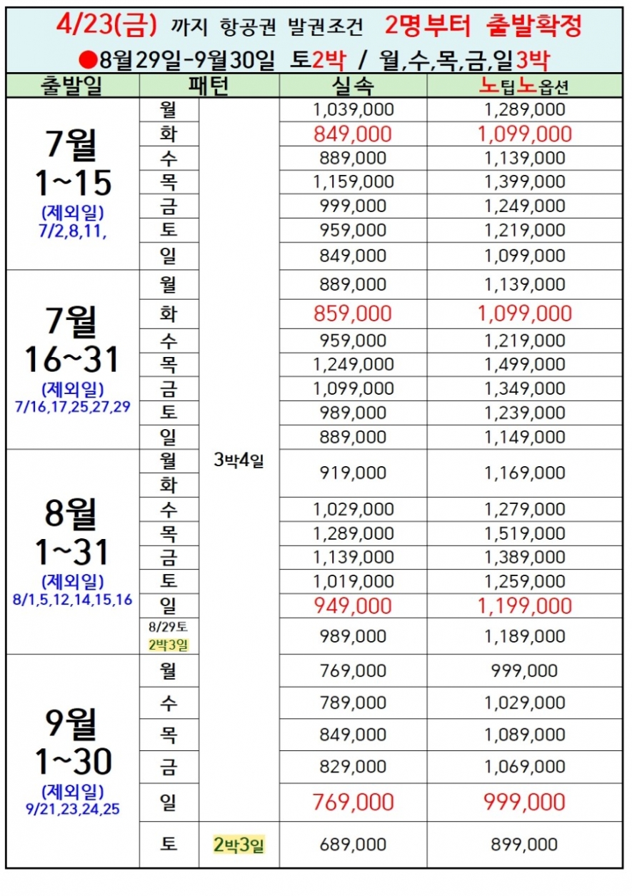 -전일정 4/23, 오전11시까지 이요금 입니다. 이후 요금 인상될 수 있습니다.