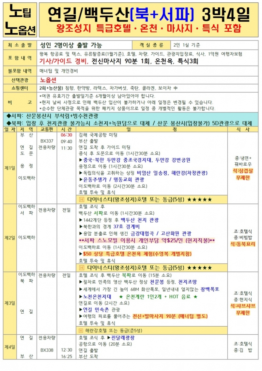 노팁,노옵션 (2박3일(북파), 3박4일(서파&북파))