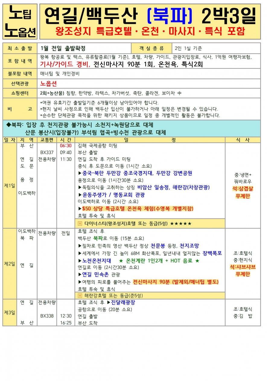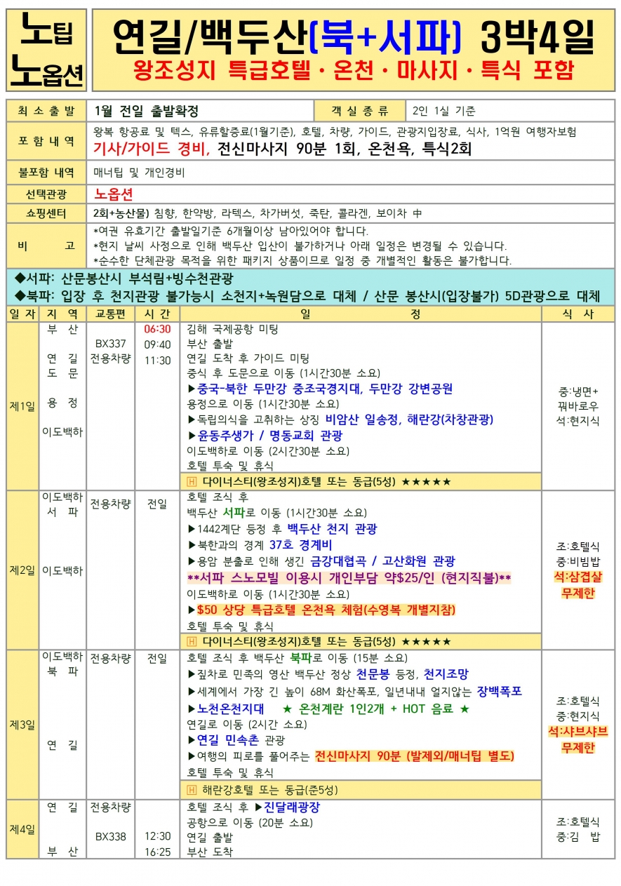 노팁,노옵션 (2박3일(북파), 3박4일(서파&북파))