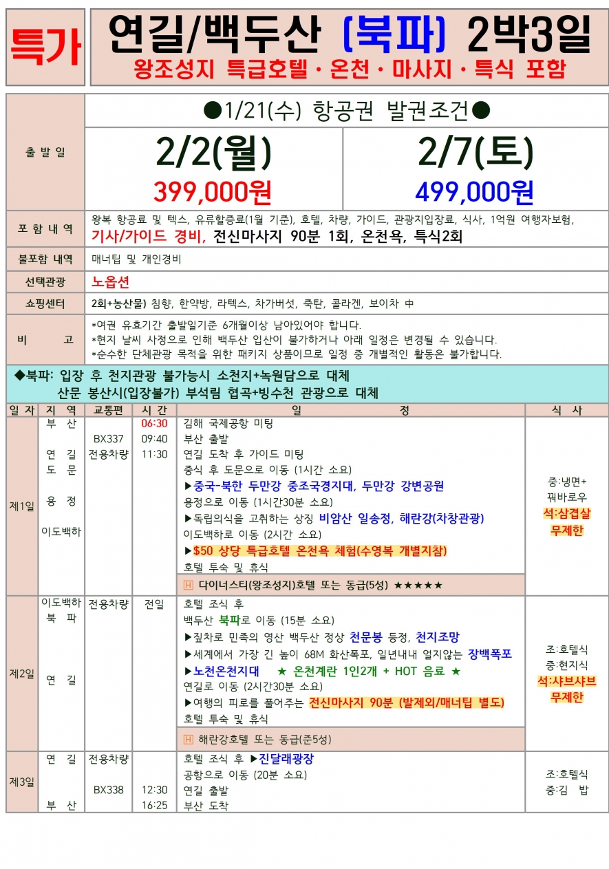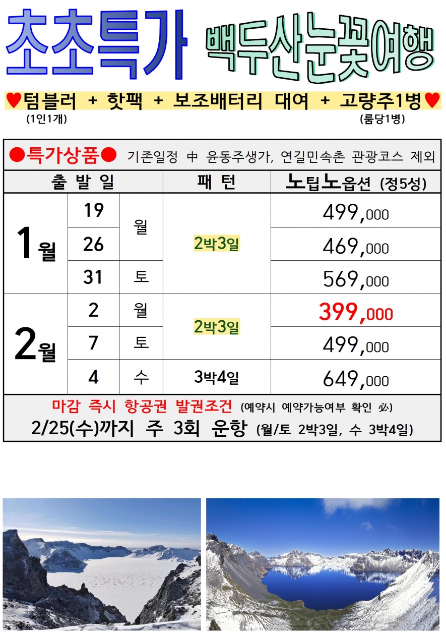 2월 토요일 (2박3일) 2/7 = 노옵션 499,000원 [특가일/집중모객중]