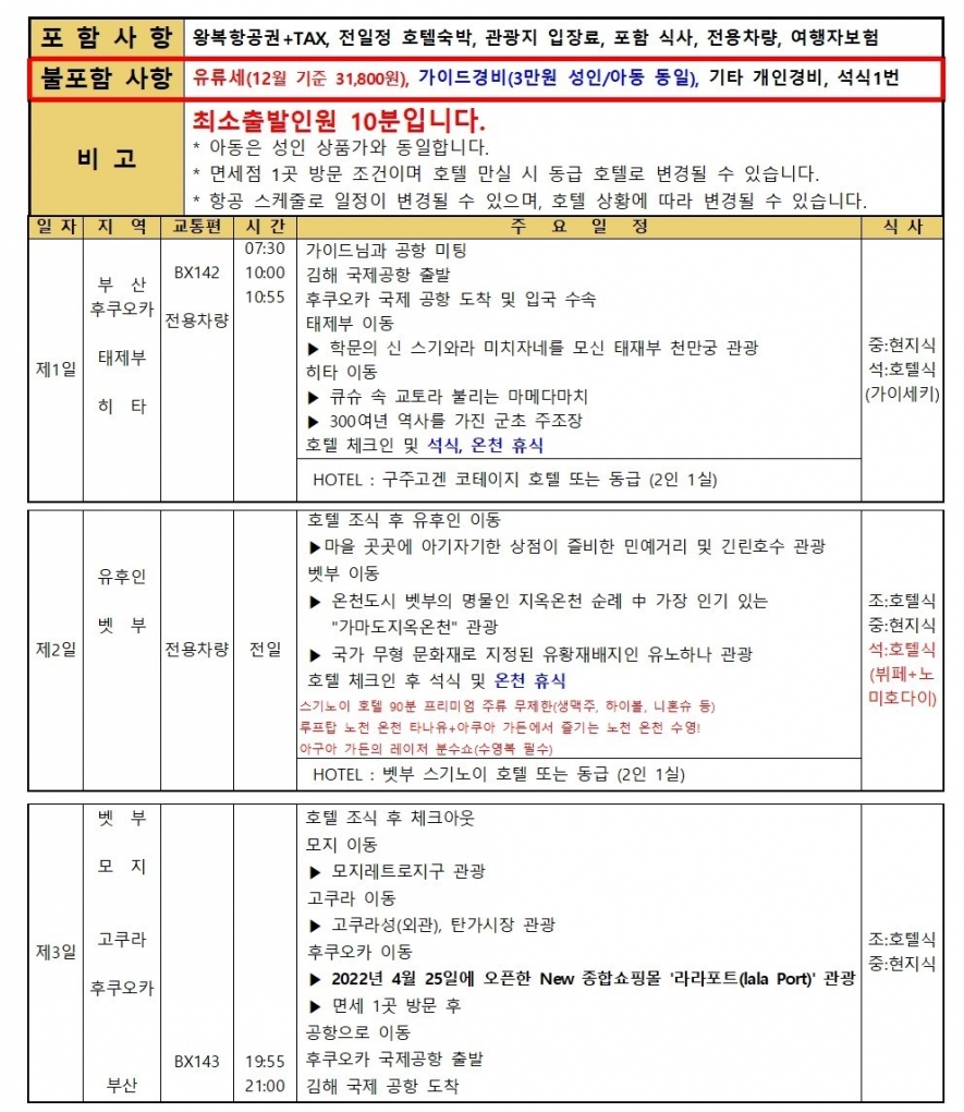 매일 10명이상 진행하오니, 예약후 최종출발여부는 최소 한달전 안내드립니다.