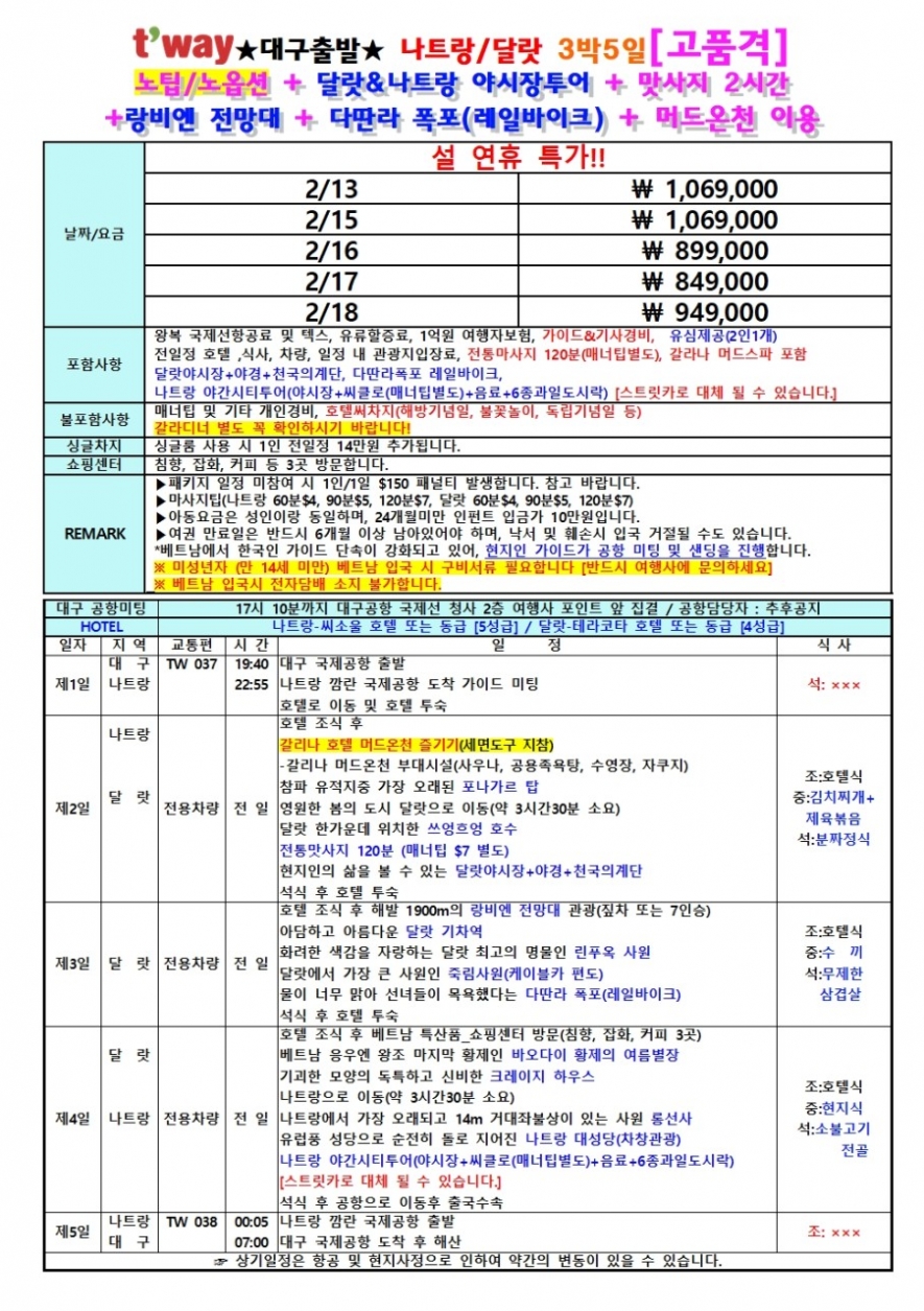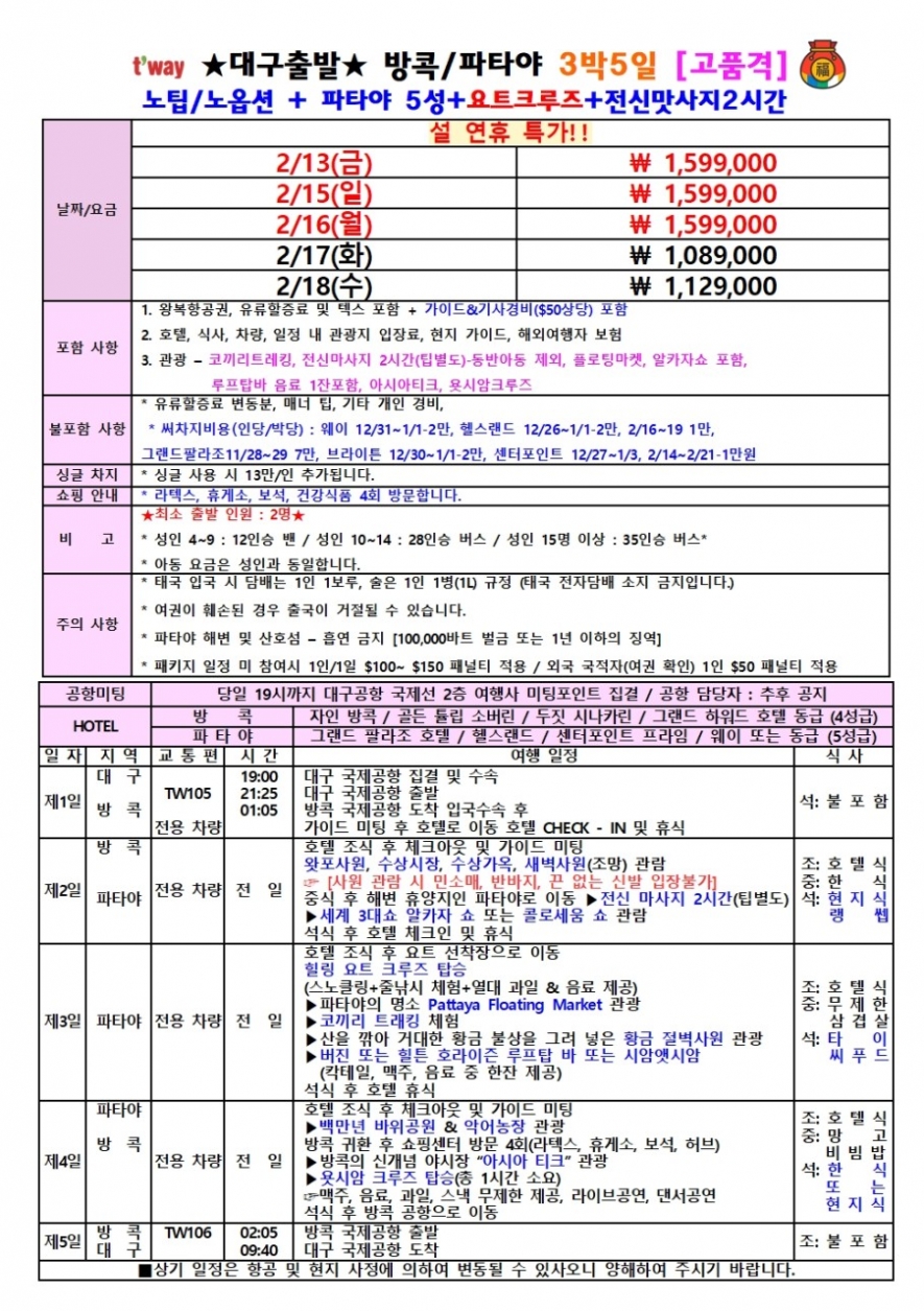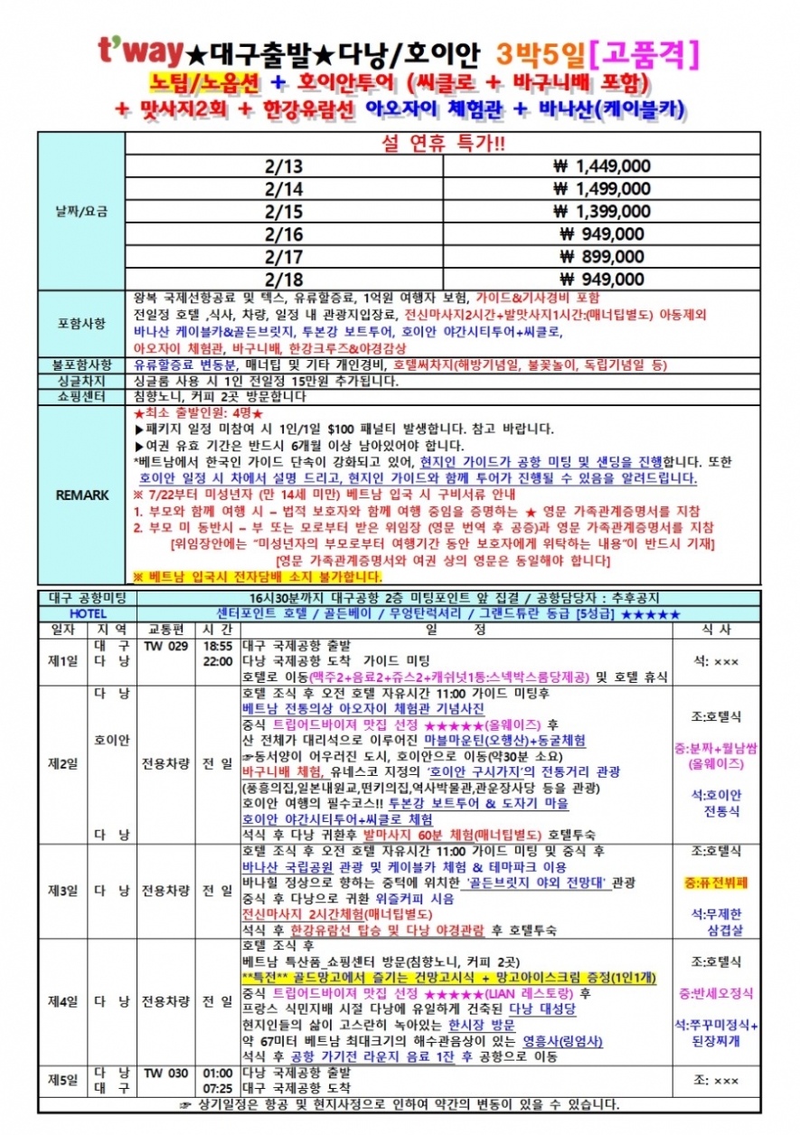 인천,대구공항 출발상품은 별도 문의주세요.