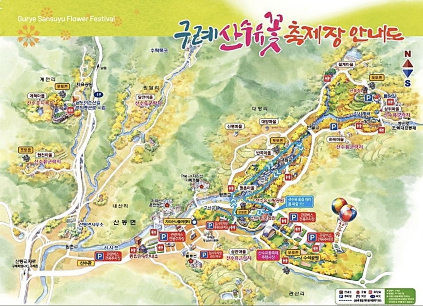 구례산수유마을 <중식-개별식,현지식당이용> 평촌마을 / 박곡마을 / 하의마을 / 상의마을 / 산수문화회관 / 축제장(수석공원) / 상광마을
