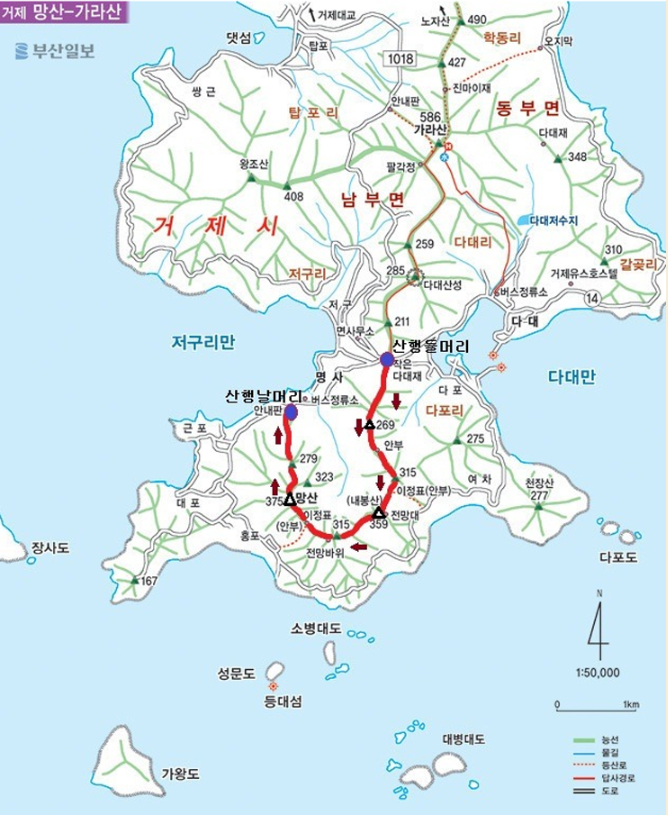 거제 망산 코스 : 작은다대재 ~ 내봉산 ~ 망산 ~ 명사마을 7km ※중식-개별 <도시락 준비해주세요~!!> |