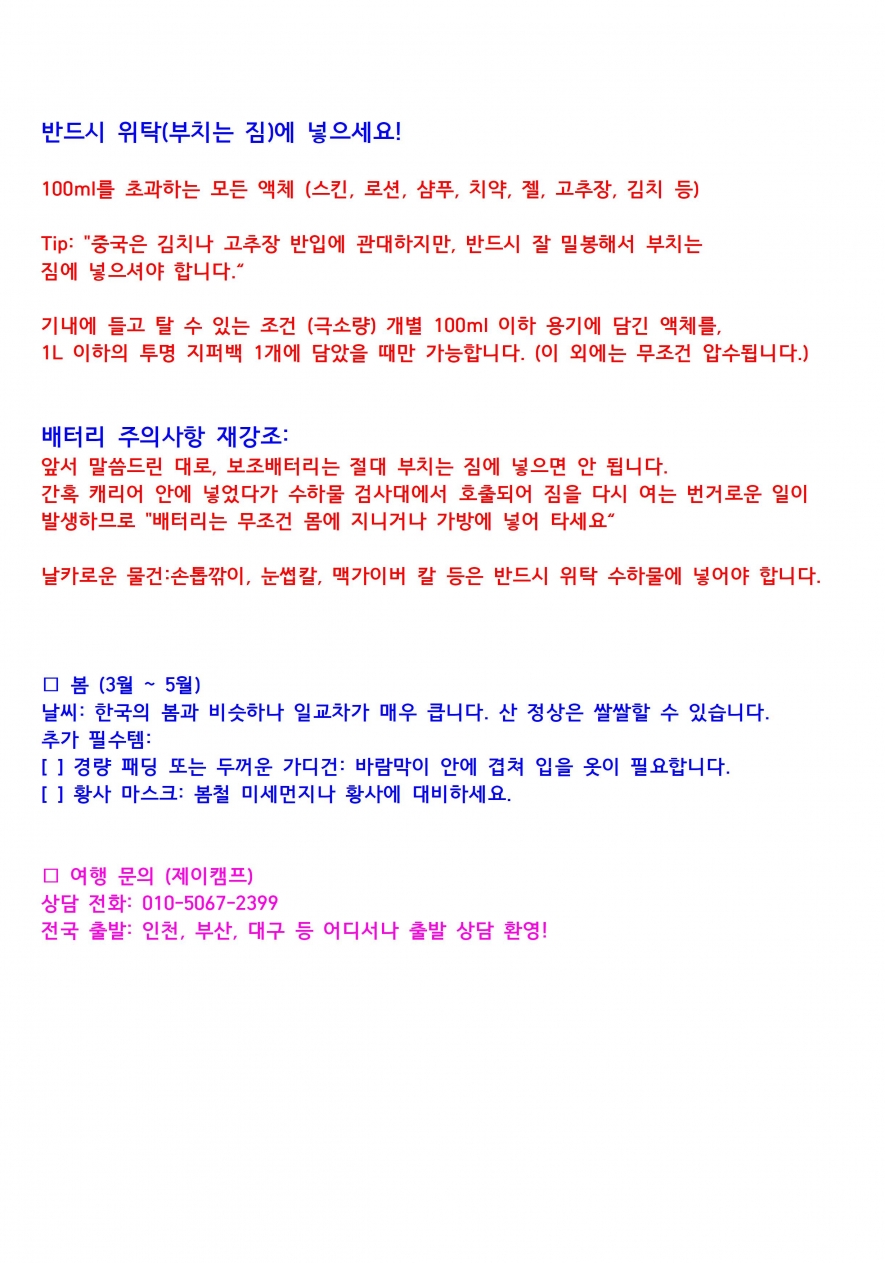★3.25(수) 오전 11시이후 요금 인상, 유류할증료 포함 10만원이상 인상될 수 있습니다.